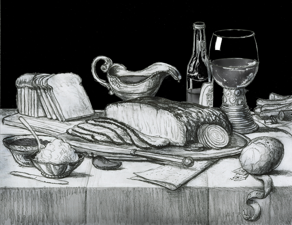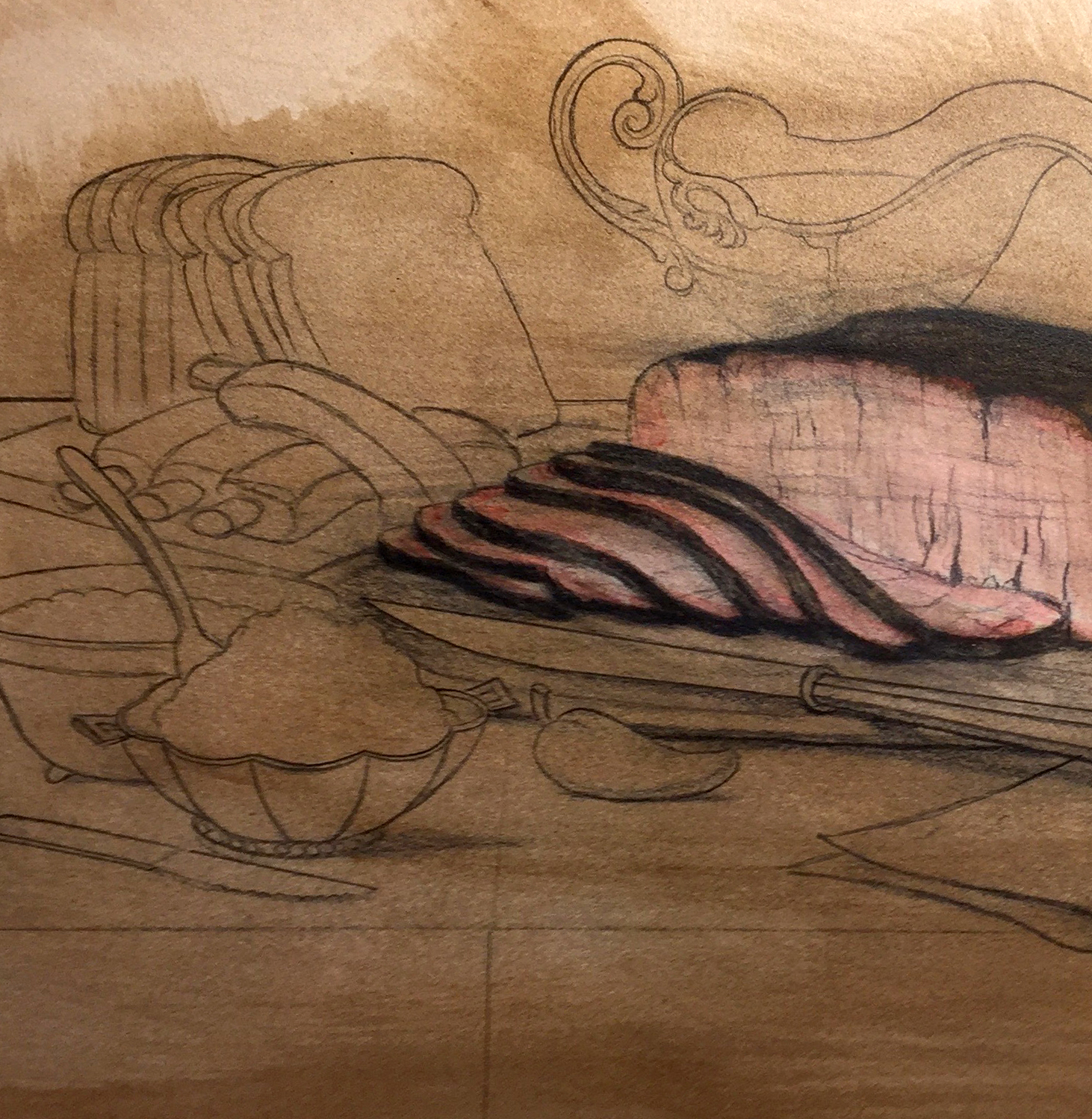December 7, 2017 This summer, I received a call from the folks at Texas Monthly, my hometown/homestate hero and one of the great magazines out on the stands these days. Emily Kimbro, Victoria Millner, and the wonderful TJ Tucker were hoping I might be able to create an elaborate Dutch still life of the classic BBQ meal to grace the cover of their once-every-5-years celebration of the Art of BBQ, Texas-style. The trick: they contacted me on Tuesday evening, and needed art first thing Friday morning. Could I do it? For Texas BBQ, anything is possible!